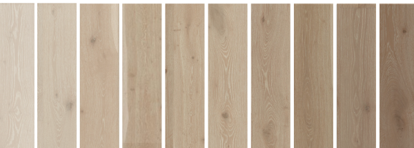 This product contains color variation that ranges from light to dark planks. Wood is a natural product with inherent differences in color, texture and grain that may not be represented in this room scene.
