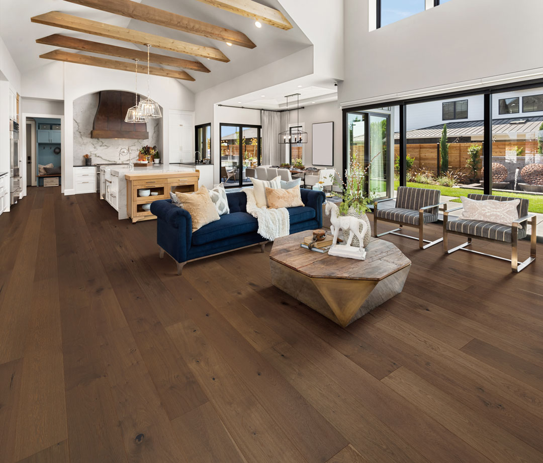 Hillcrest View is a Premium Hardwood Flooring. It uses a thermal treated color process to creates a unique color blend enhancing the wood?s natural patina. 8.6″ wide planks help give a larger feel to any space.