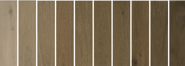 This product contains color variation that ranges from light to dark planks. Wood is a natural product with inherent differences in color, texture and grain that may not be represented in this room scene.